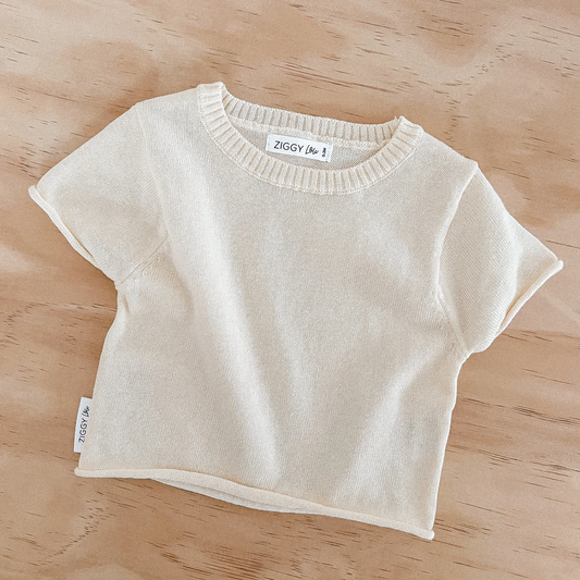 Knitted Tee - Cream | SIZE 0-3M LEFT