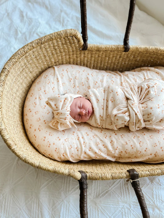 Jersey Swaddle + Oversized Topknot Set - Paisley Cream