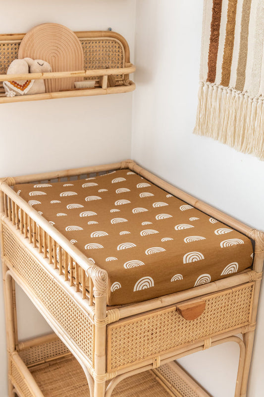 Organic Bassinet Sheet/Change Pad Cover | Rainbows - Umber