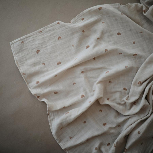 Organic Fitted Cot Sheet | Rainbows - Ivory + Umber