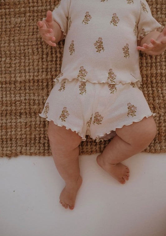 Floral Ribbed Set - Cream | SIZE 3Y LEFT