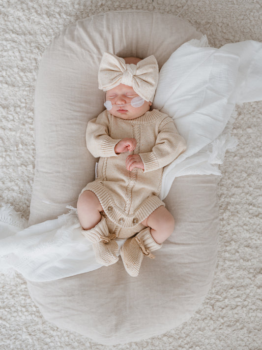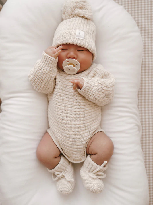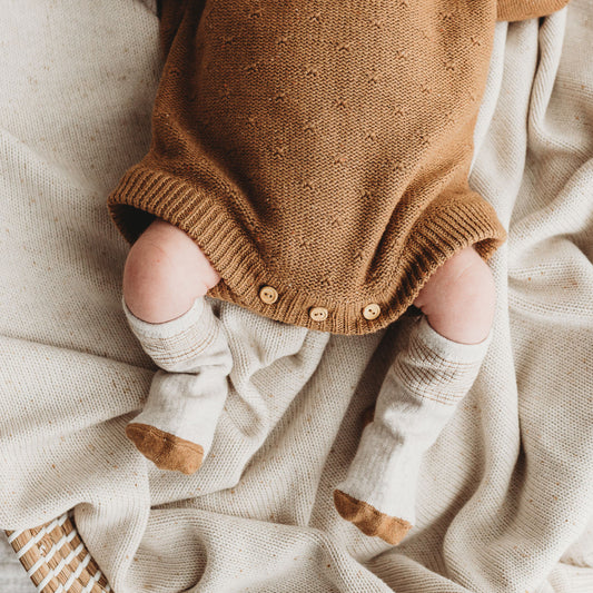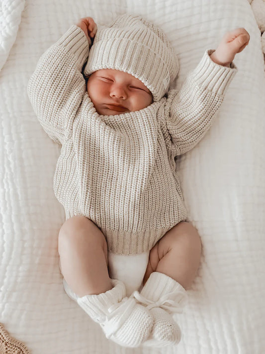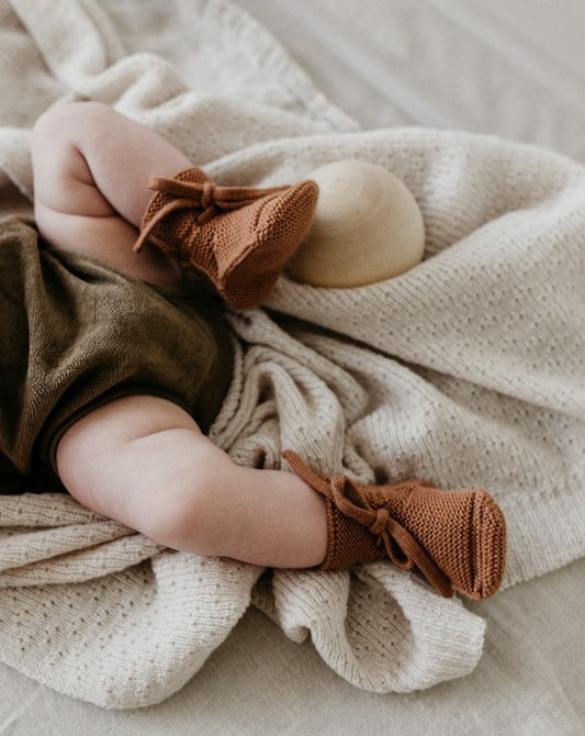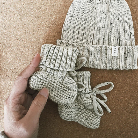 Organic Knitted Baby Booties - Husk Speckled