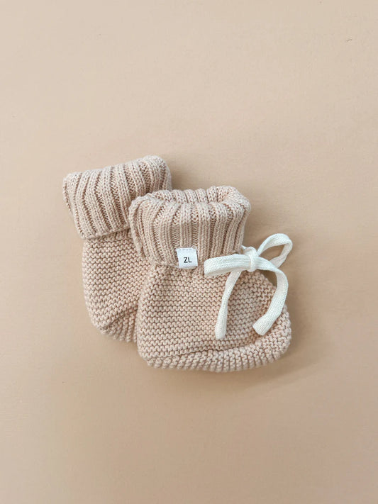 Ribbed Baby Booties - Beige