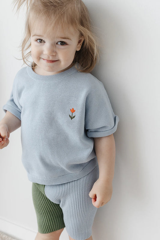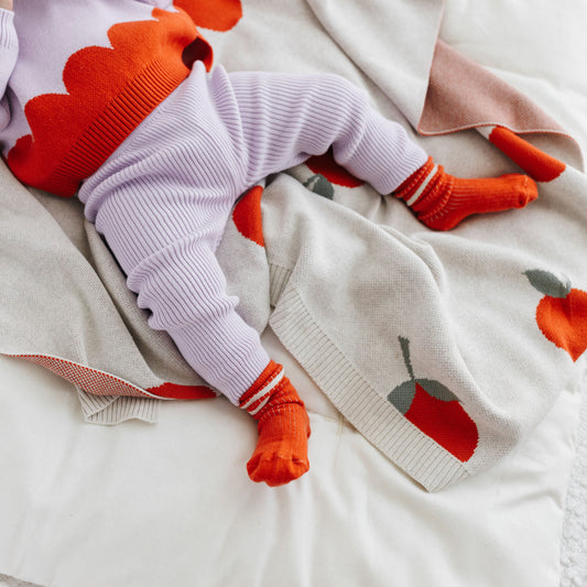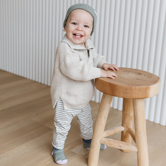Organic Cotton Thick Knit Leggings - Oat Navy Fleck