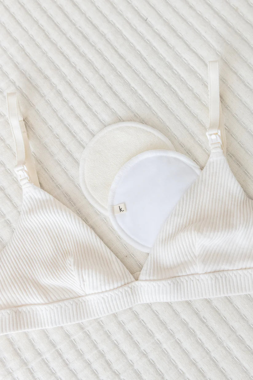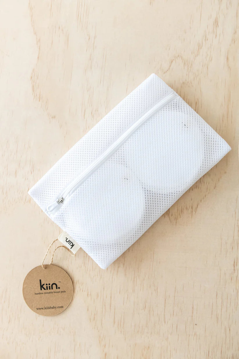 Place rinsed breast pads into mesh laundry bag (avoid overcrowding) and into regular washing cycle with mild detergent.