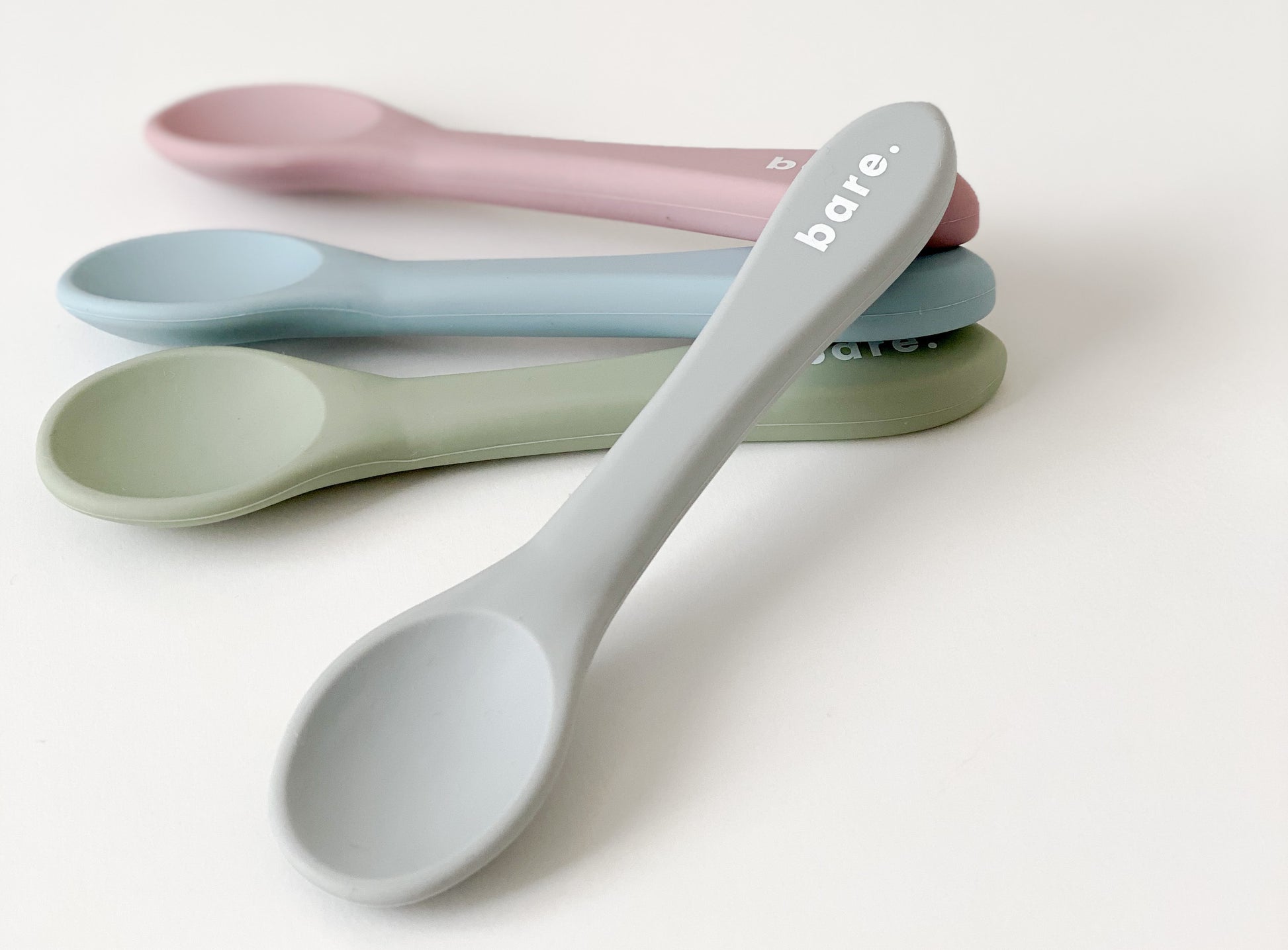 Made from soft food grade silicone, which is BPA Free, non-toxic, and can withstand high heat and freezing cold temperatures, our new spoons are odour and stain resistant, hypoallergenic and SO easy to clean (just like our bibs!).