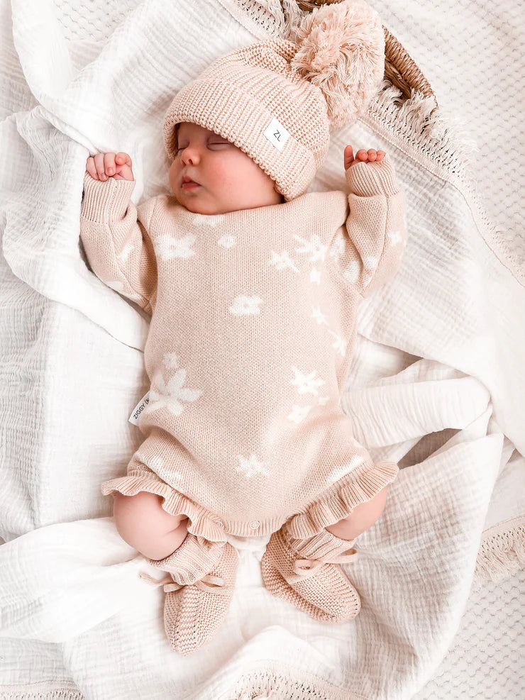100% organic cotton chunky knit beanie to match our rompers.