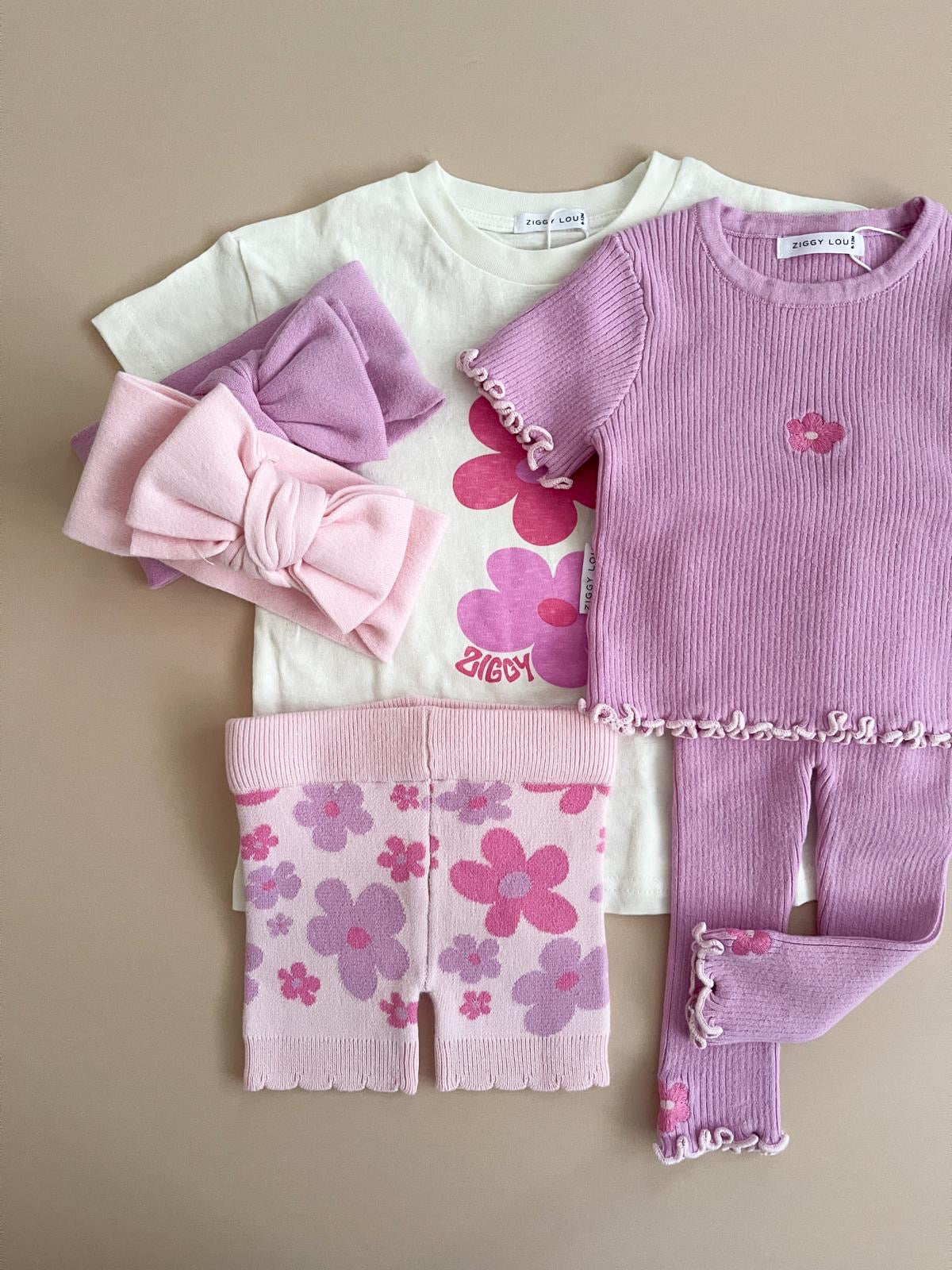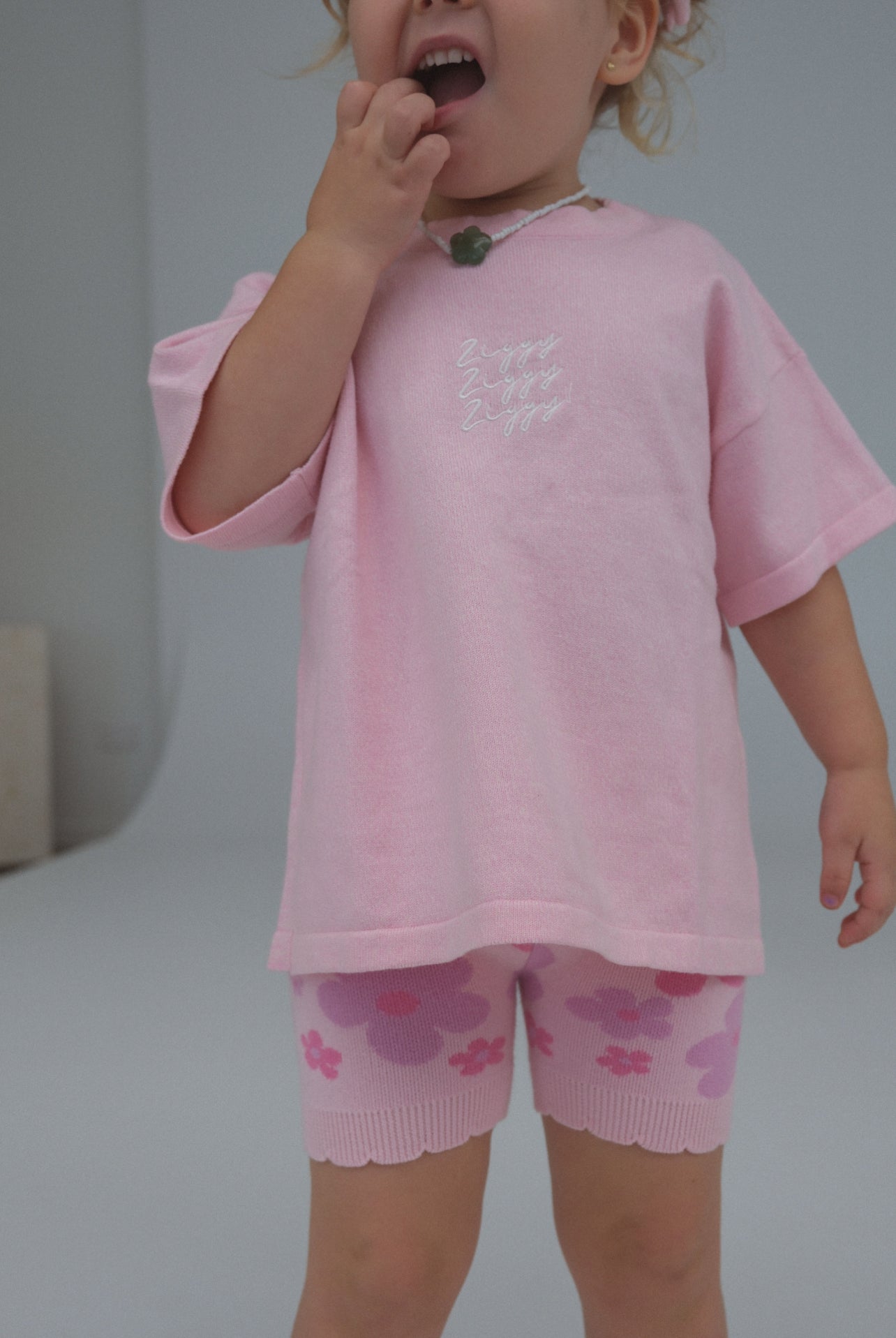 Jacquard knit bike shorts featuring our Cora floral design. A comfortable, stretchy fit with an elastic waist and scalloped leg. Pair with the Cora Tee or Lila Ribbed Tee.