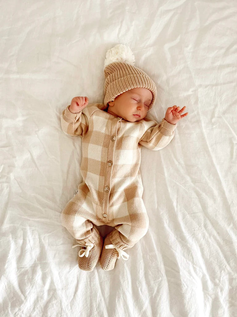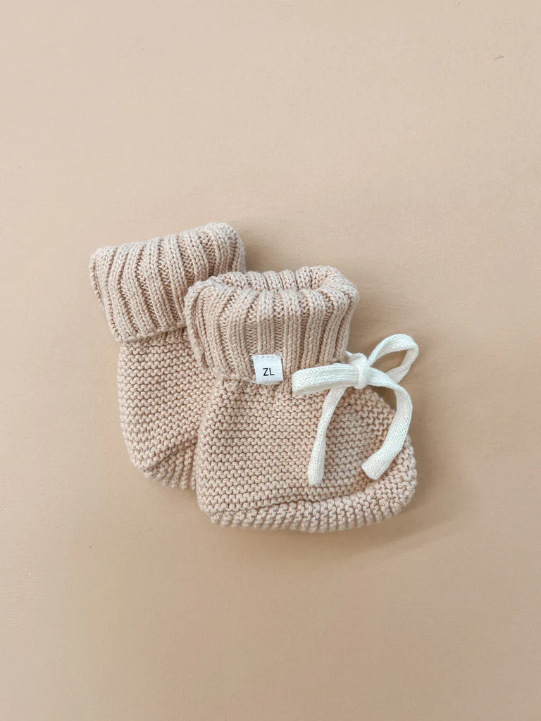 Knitted booties to complement our knitted rompers & beanies. Designed to be a timeless keepsake to remember just how teeny, tiny they were. An heirloom piece to pass down to other siblings or a special something to pop in their keepsake box. Functional drawstring to ensure booties don't fall off when worn.