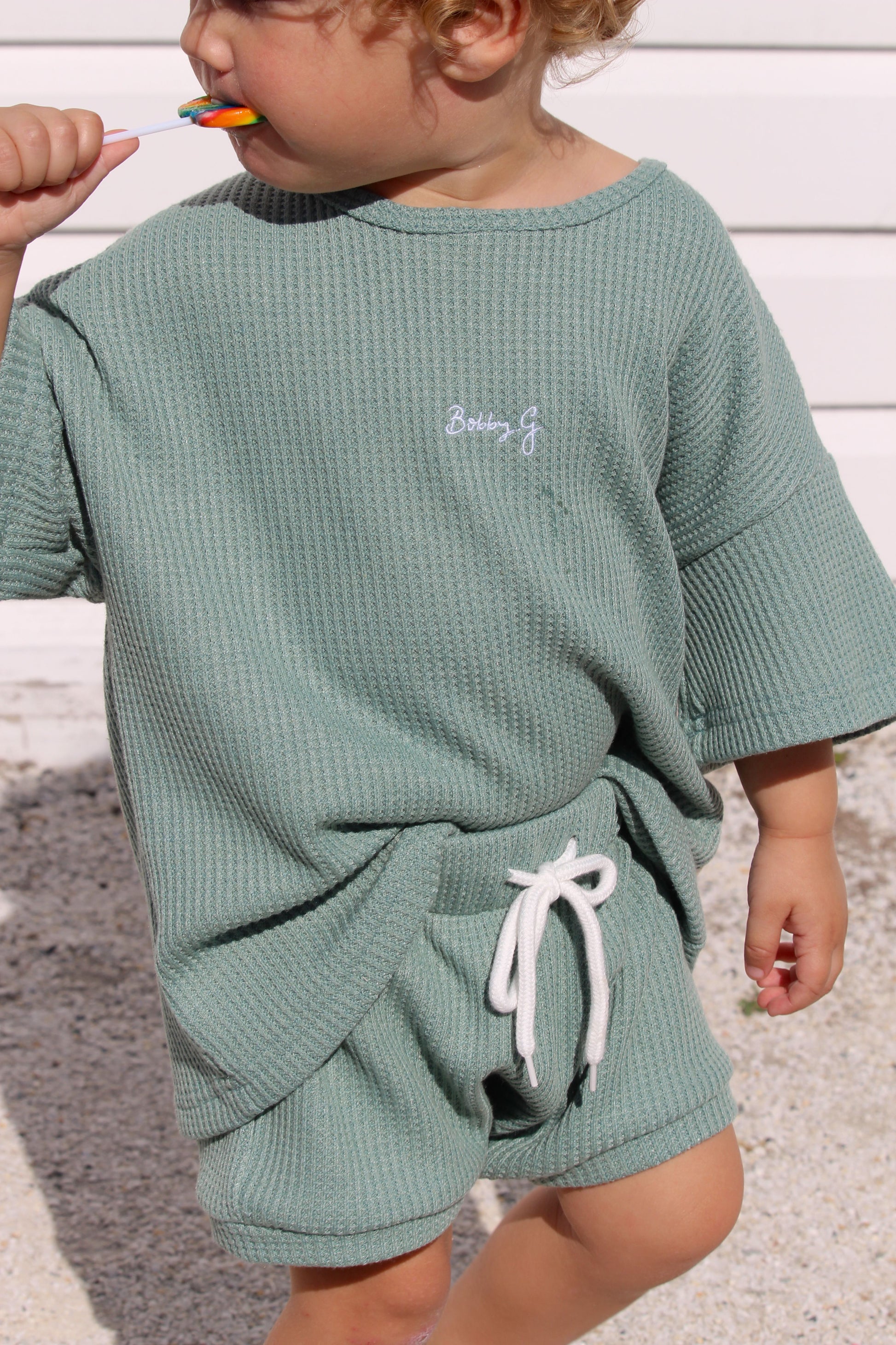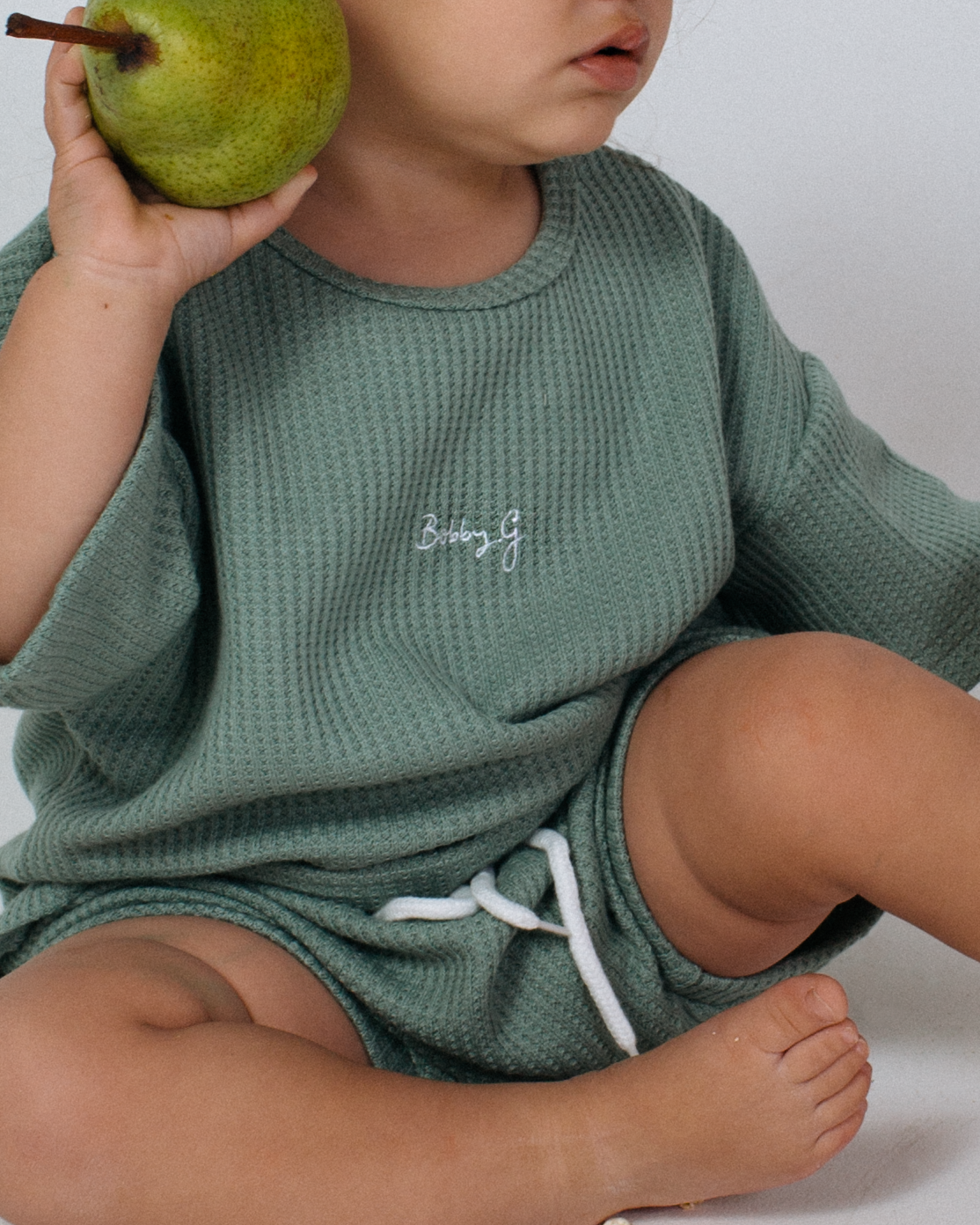 Introducing the Coby shorties: Our signature design for all-day comfort and style. With an elastic waistband and luxuriously soft fabric, these shorties provide durability and a smooth, comfortable feel for your little one.