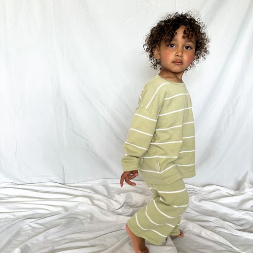 Our knitted cropped pants are the perfect staple piece for your little one. Cropped length, functional drawstring and elastic waist for the perfect fit. Matches with our Fern Stripes long sleeve tee or our Ziggy tees.