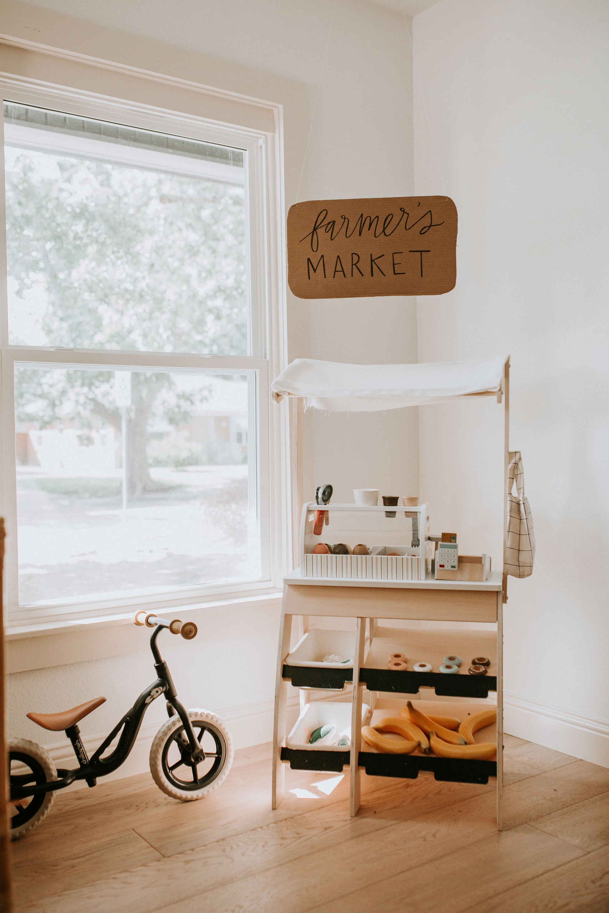 Perfect for imaginative play, our farmers market tote is a great size for little hands and includes 6 hand sewn fruits + veggies. Sewn and screen printed by hand on natural canvas by local artisans.