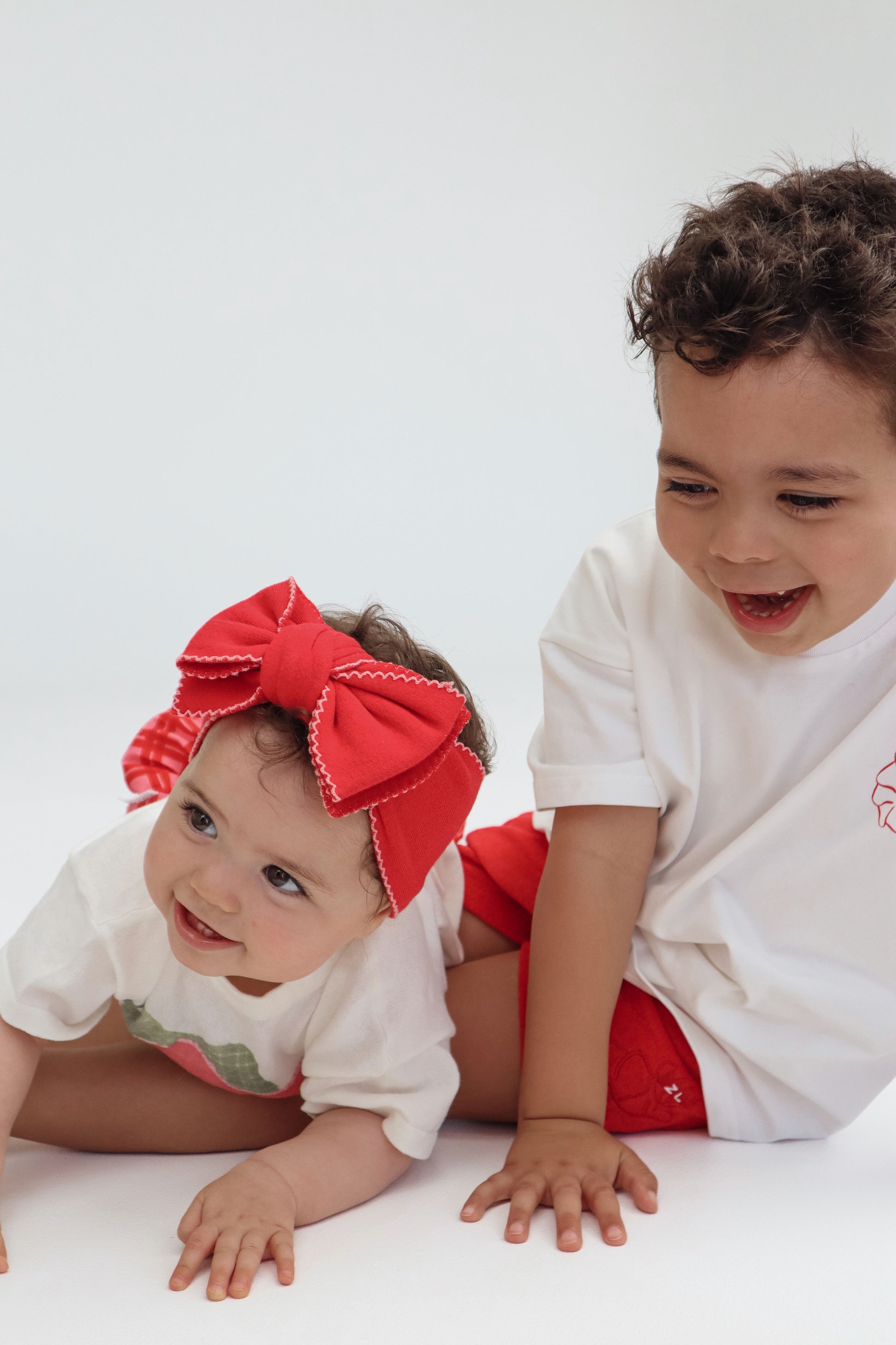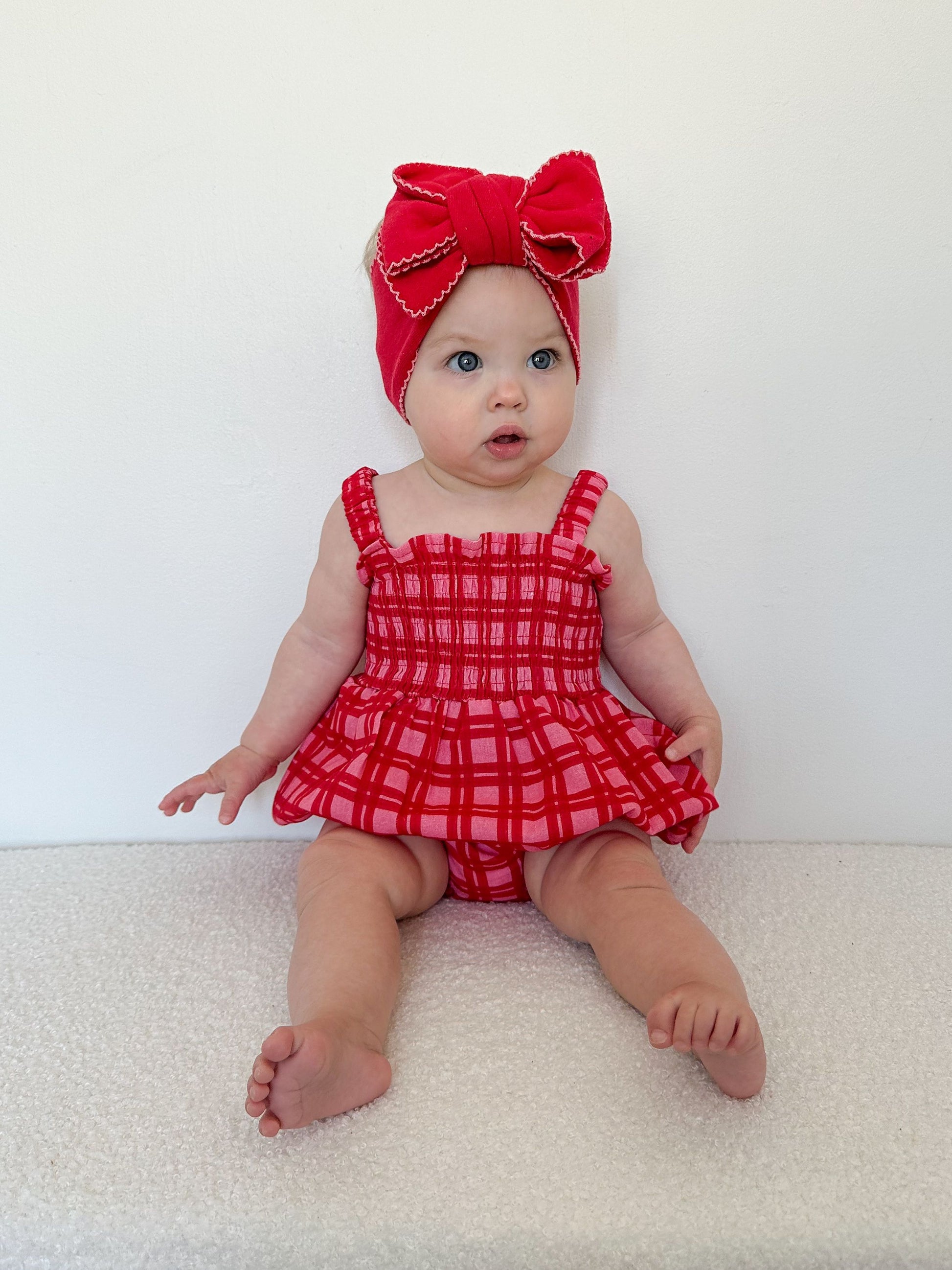 Beautiful soft knitted headband in our Scarlet colour with contrast colour trim. Mix and match with Sofia Dress or Jolene Romper.