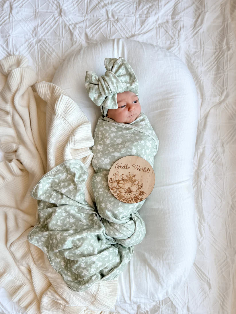 Jersey Swaddle + Oversized Topknot Set - Rosie Sage
