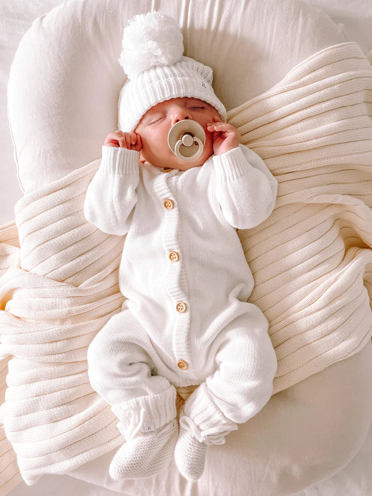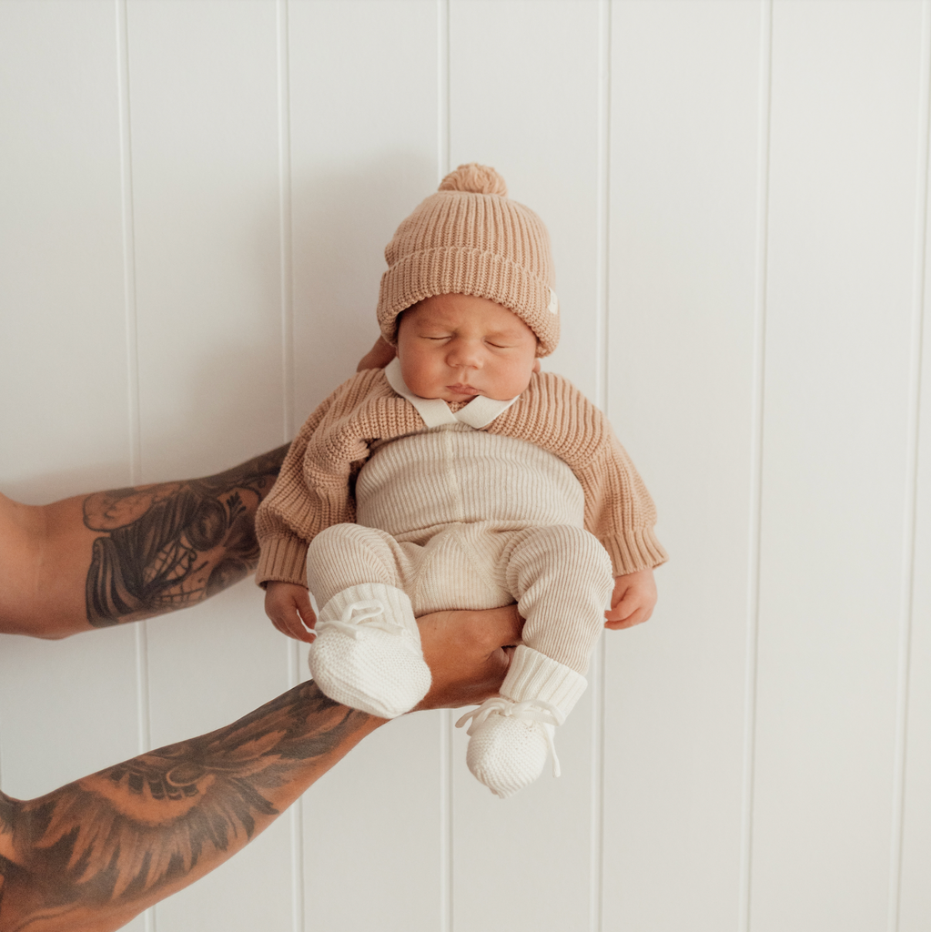 Knitted booties to complement our knitted rompers & bonnets. Designed to be a timeless keepsake to remember just how teeny, tiny they were. An heirloom piece to pass down to other siblings or a special something to pop in their keepsake box. Functional drawstring to ensure booties don't fall off when worn. Matching romper also available.