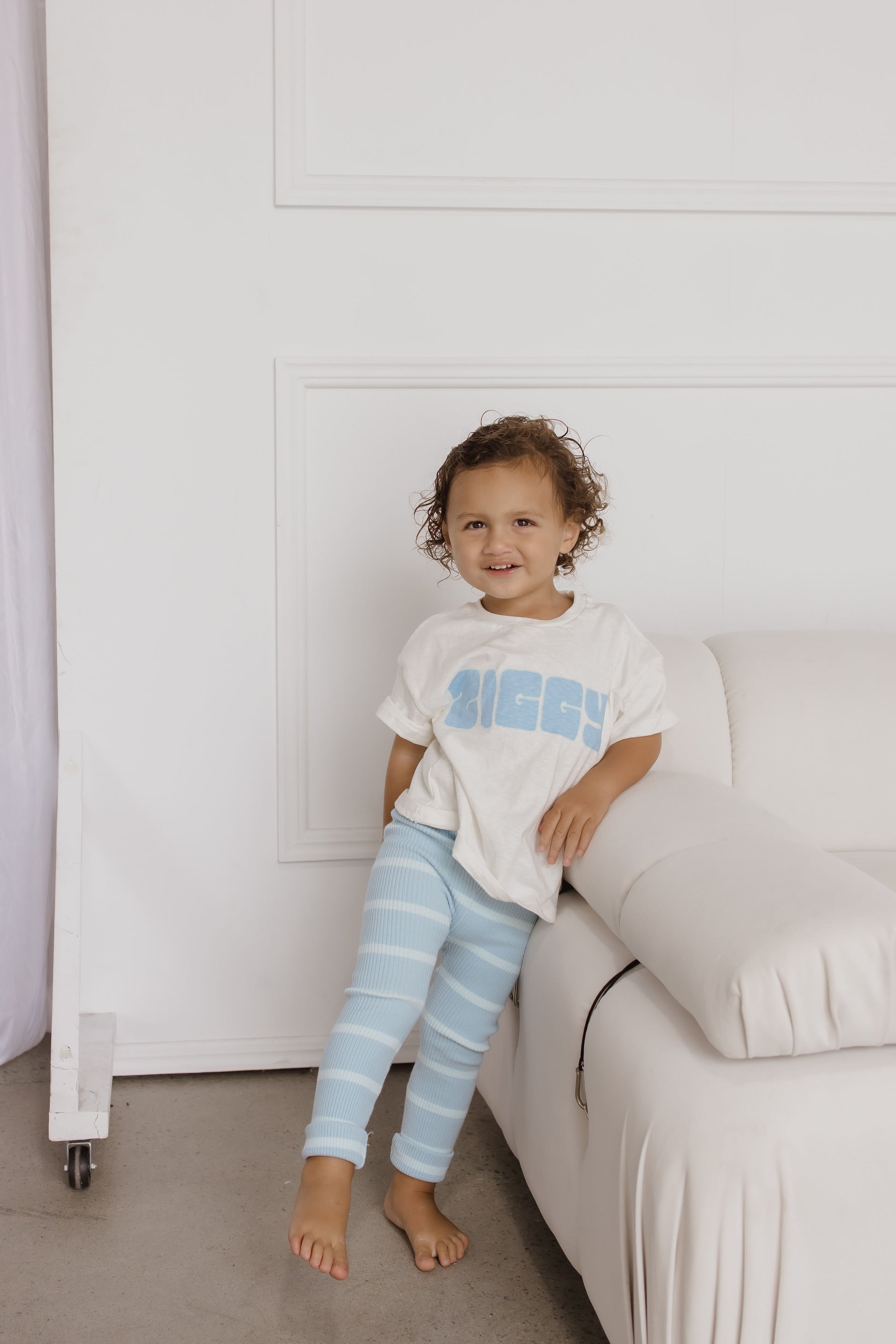 Knitted ribbed leggings, featuring stripes in our two Echo colours.