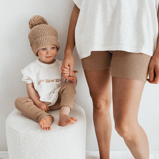 Knitted ribbed leggings, matches with our Ziggy tees.