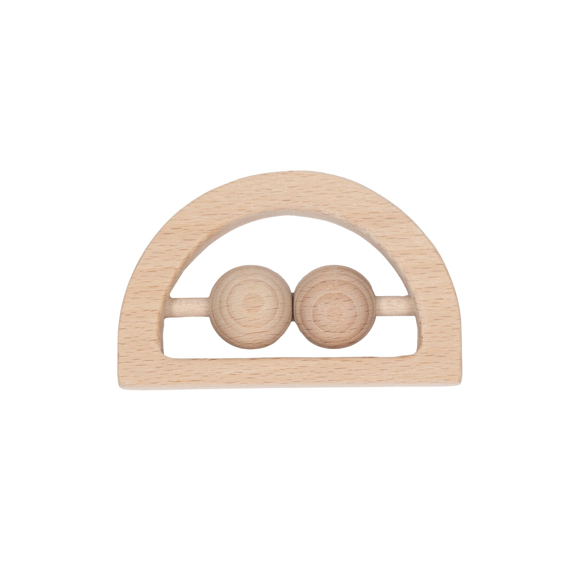 Our Rainbow Rattles are made from beautiful natural Beechwood. Hand sanded so they are silky smooth, our new rainbow design has two large beech beads for your little ones to spin, move and shake while listening to the soft rattle sounds.