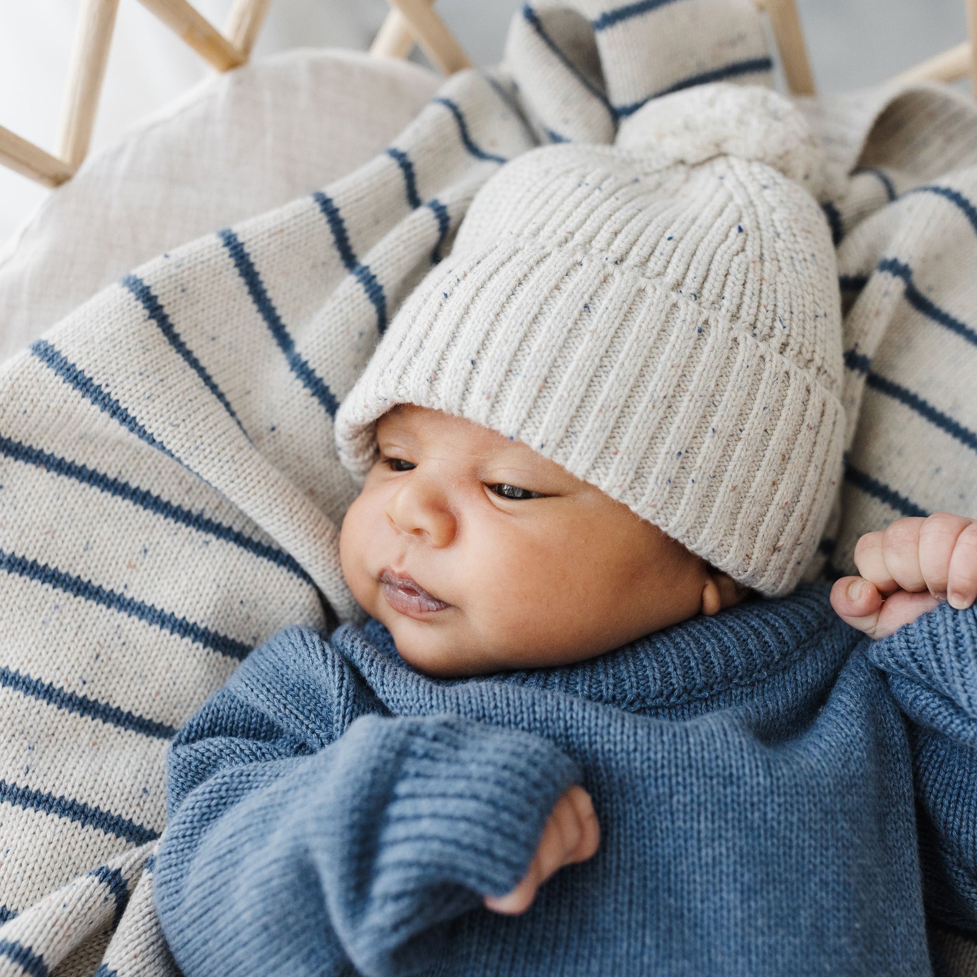 Organic Cotton Chunky Knit Beanie - Oat Navy Fleck