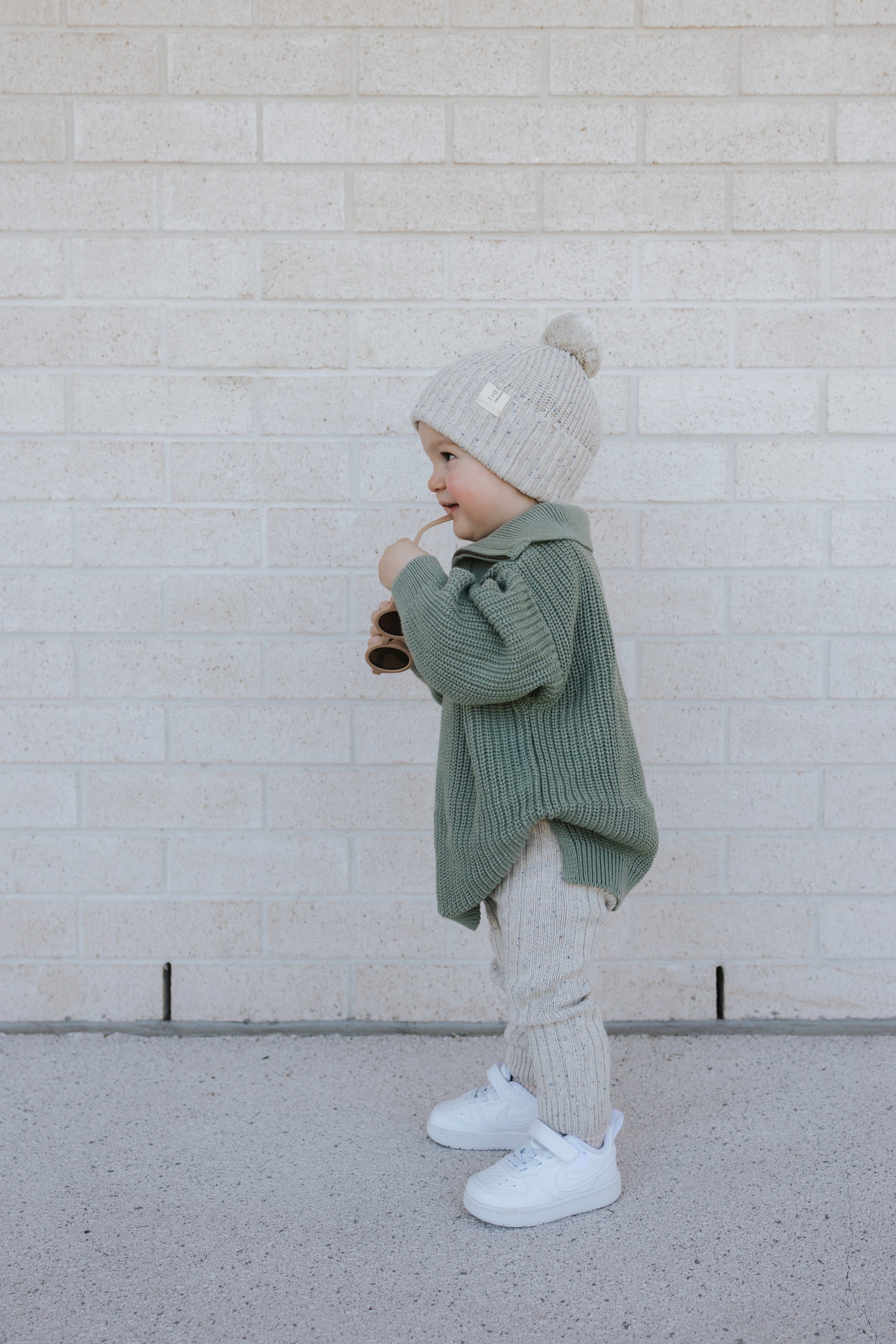 Organic Cotton Thick Knit Leggings - Oat Navy Fleck