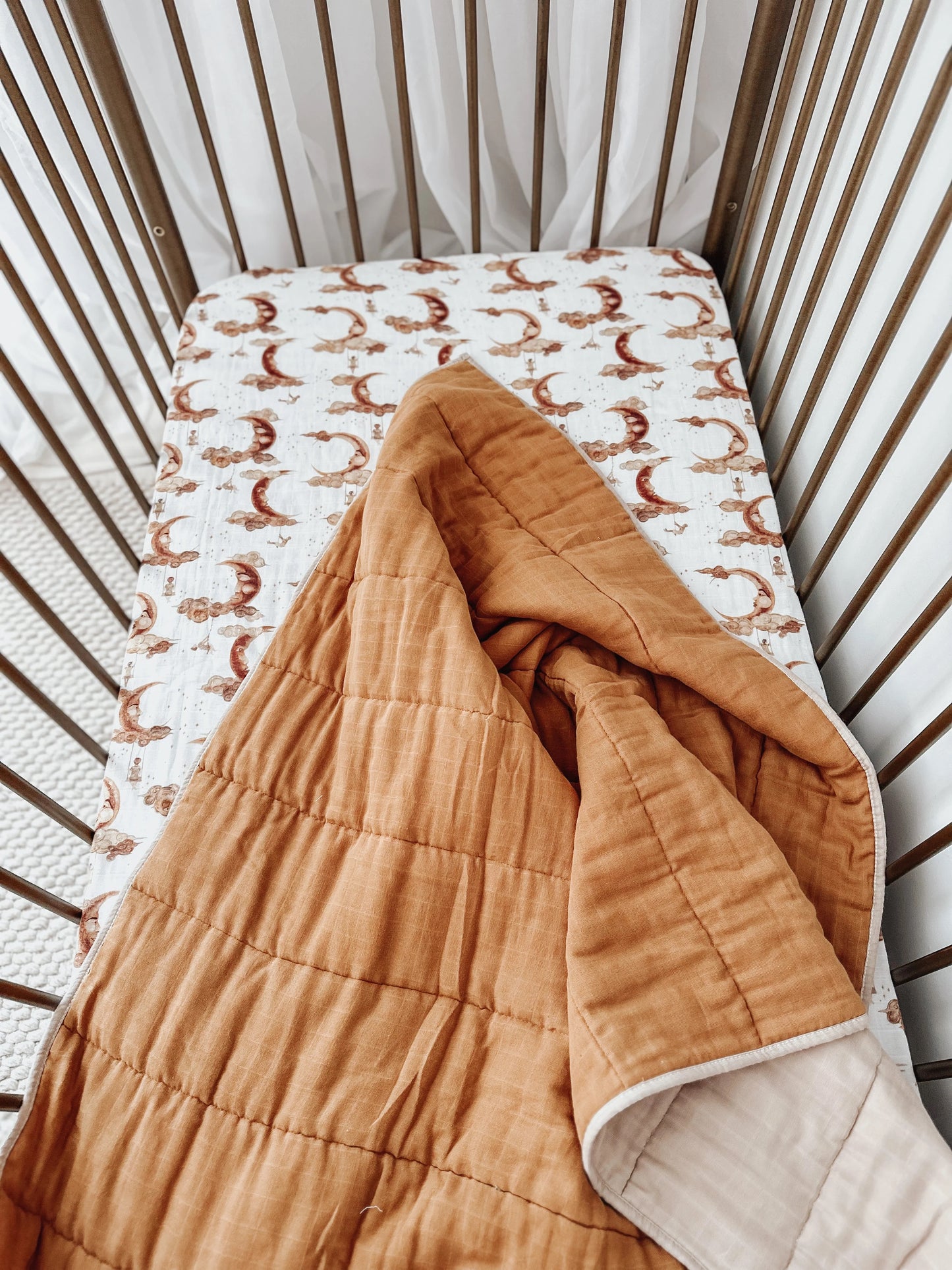 Made from soft, breathable and lightweight cotton. Pop Ya Tot cotton muslin quilts are pre-washed to increase softness and we use premium cotton to increase durability and minimise pilling.