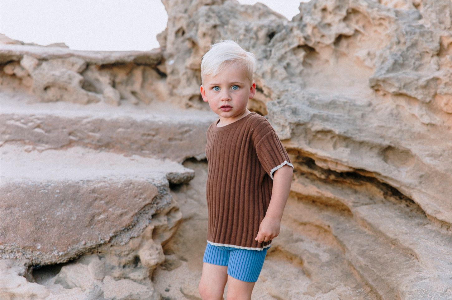 Knitted Ribbed bike shorts made from 100% Organic Cotton with GOTS certification. These shorts have a ribbed knit all over, a self finishing edge at the hem and elastic in the waistband.