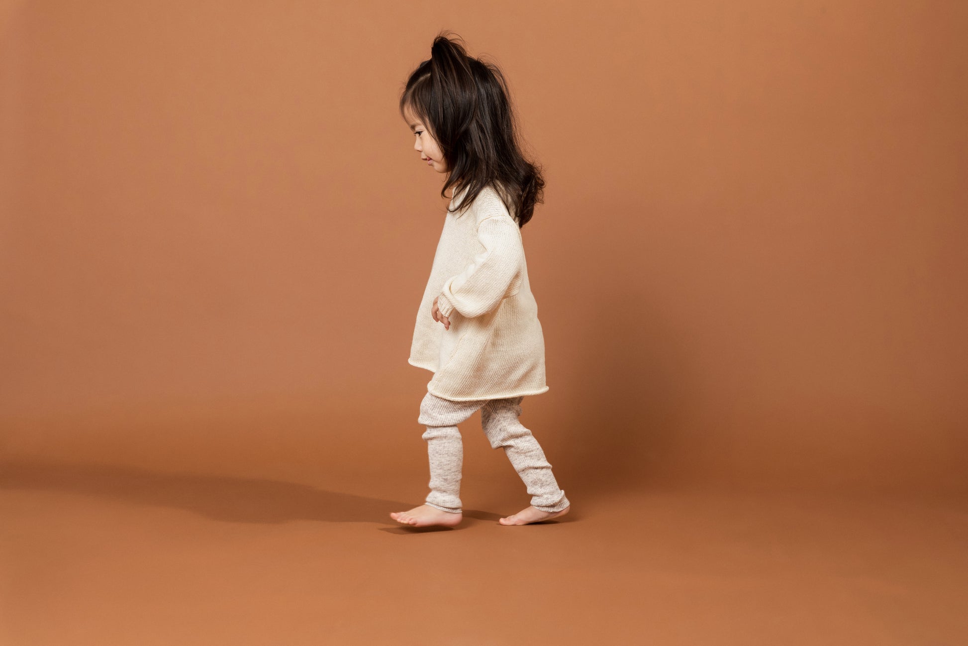 Lightweight knitted rib leggings made from GOTS certified organic cotton. These leggings have an elasticated waistband.