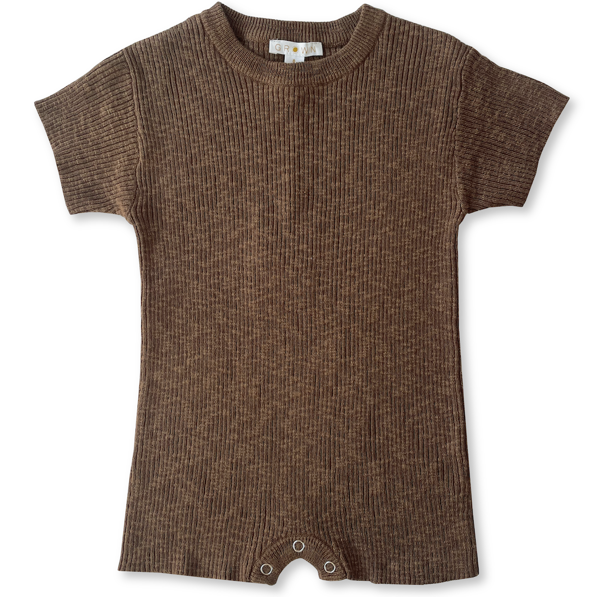 Ribbed Linen Playsuit - Chocolate | SIZE 0-3M LEFT