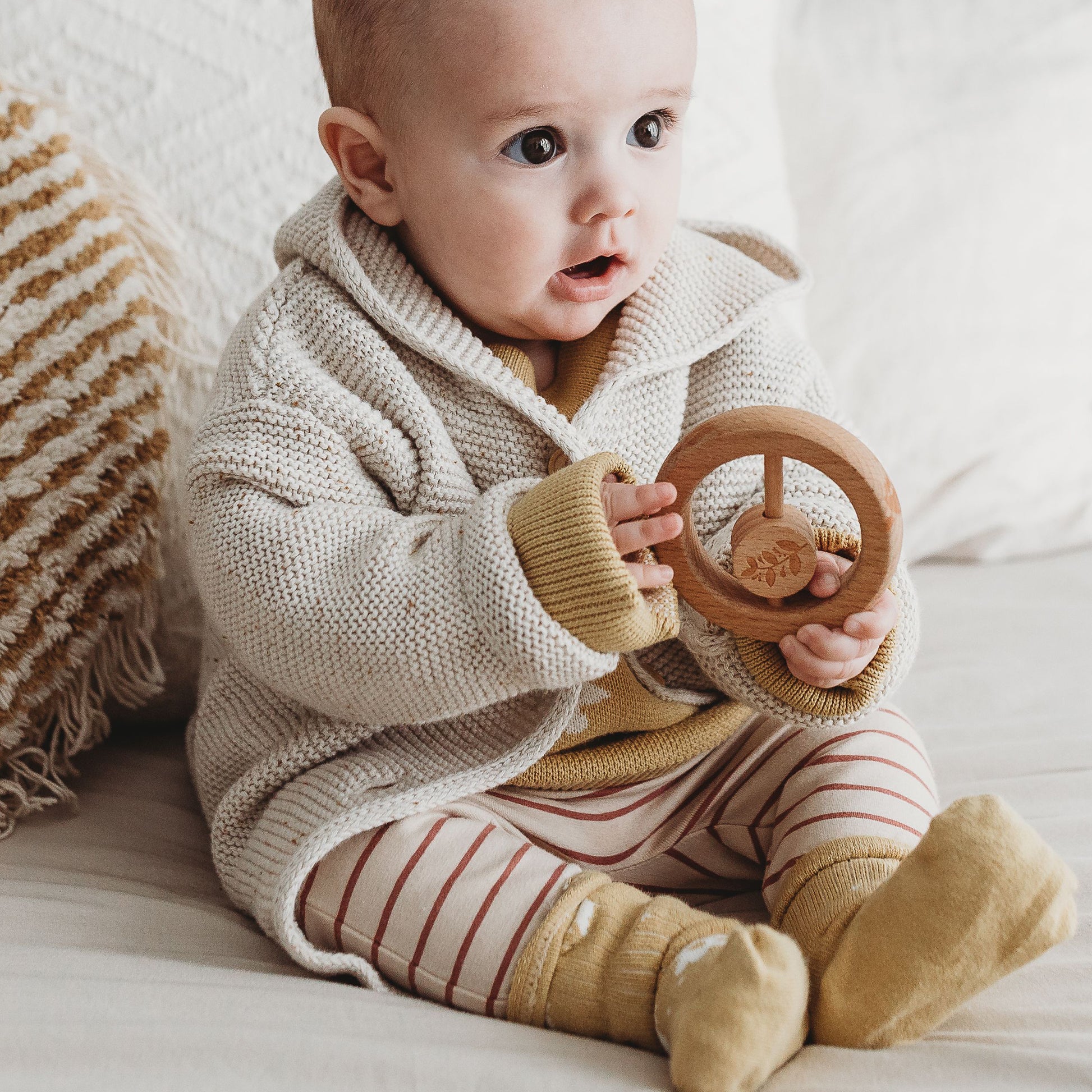 A simple baby essential long sleeve bodysuit, worn alone or layered
