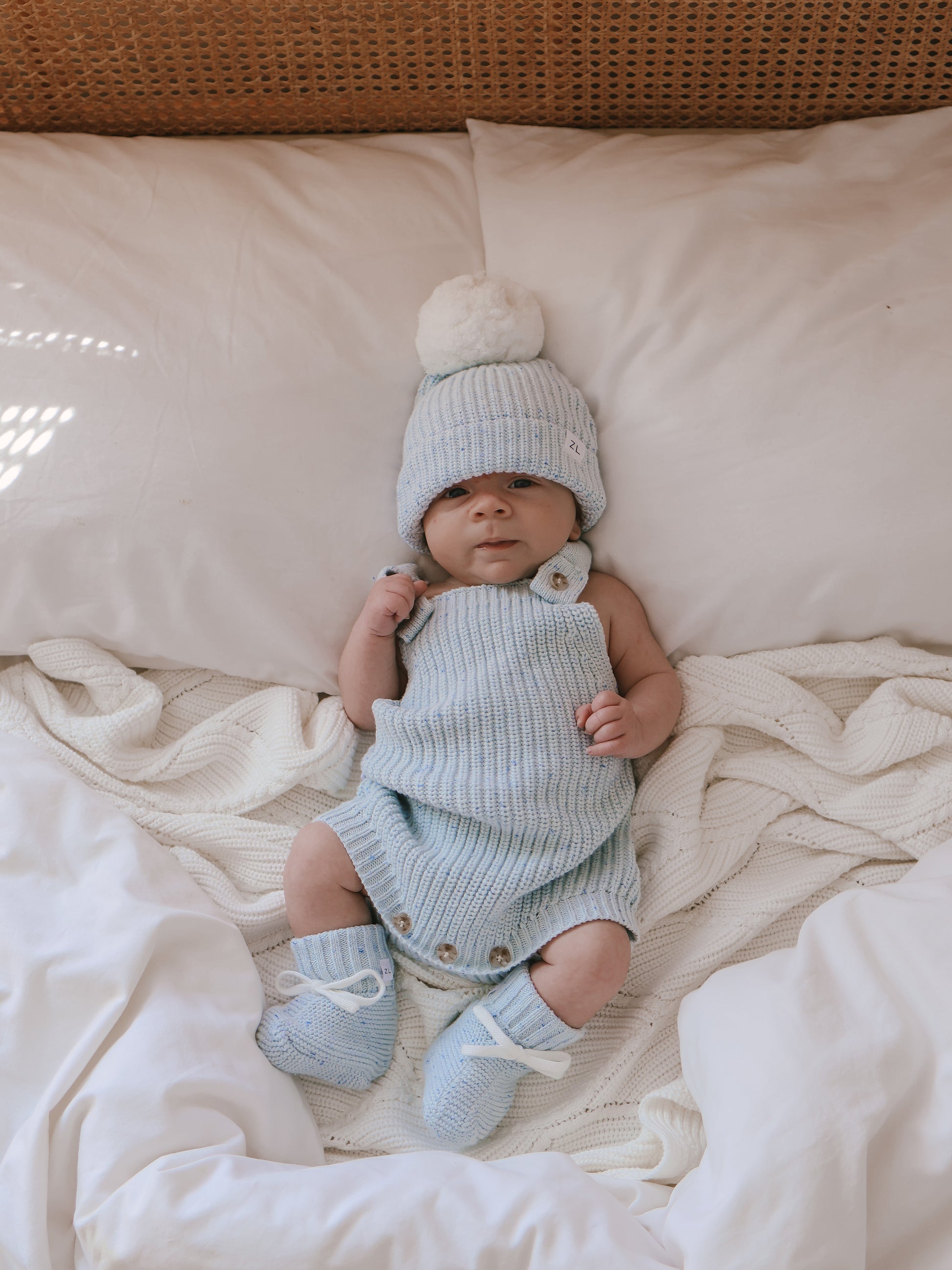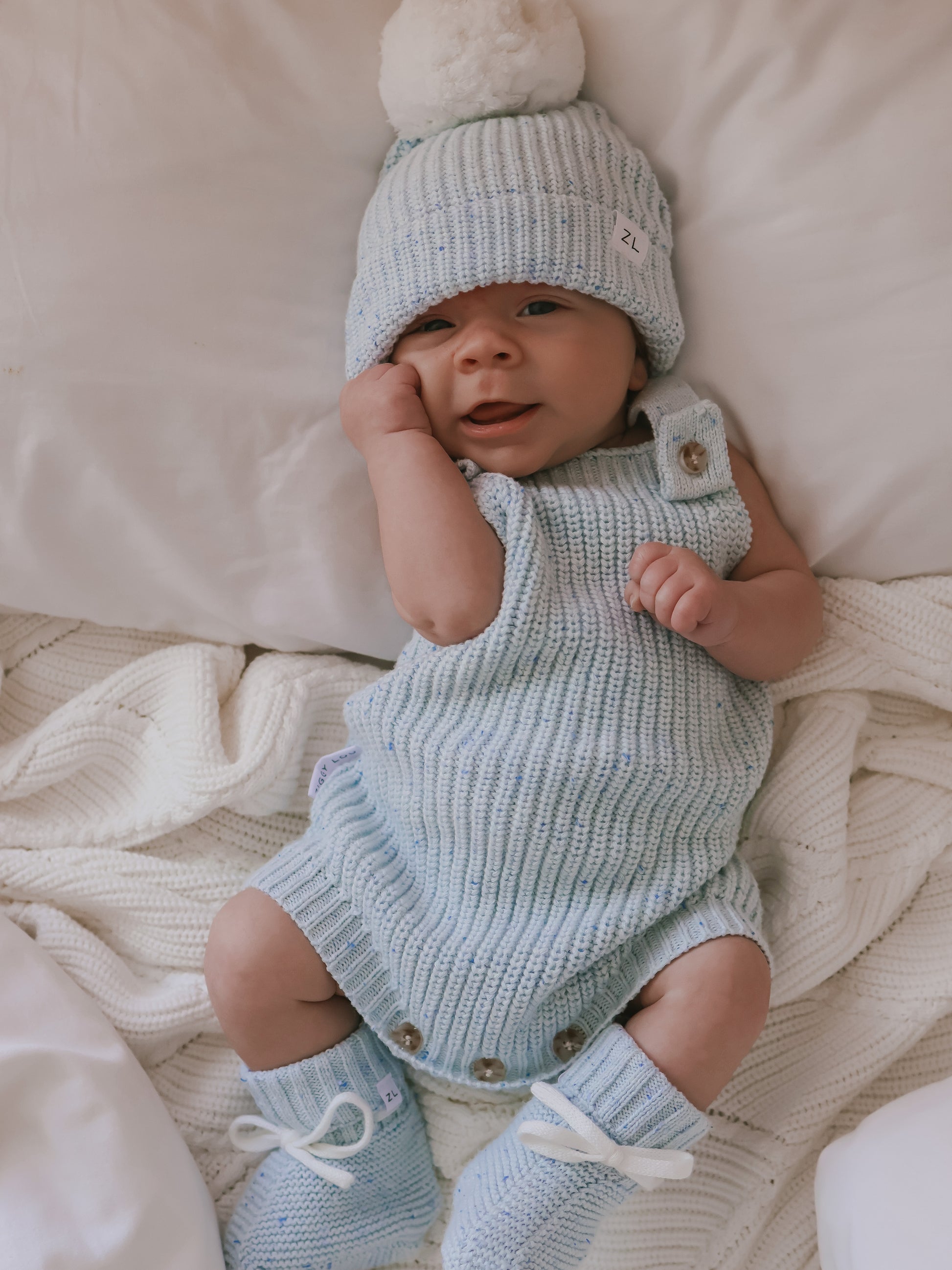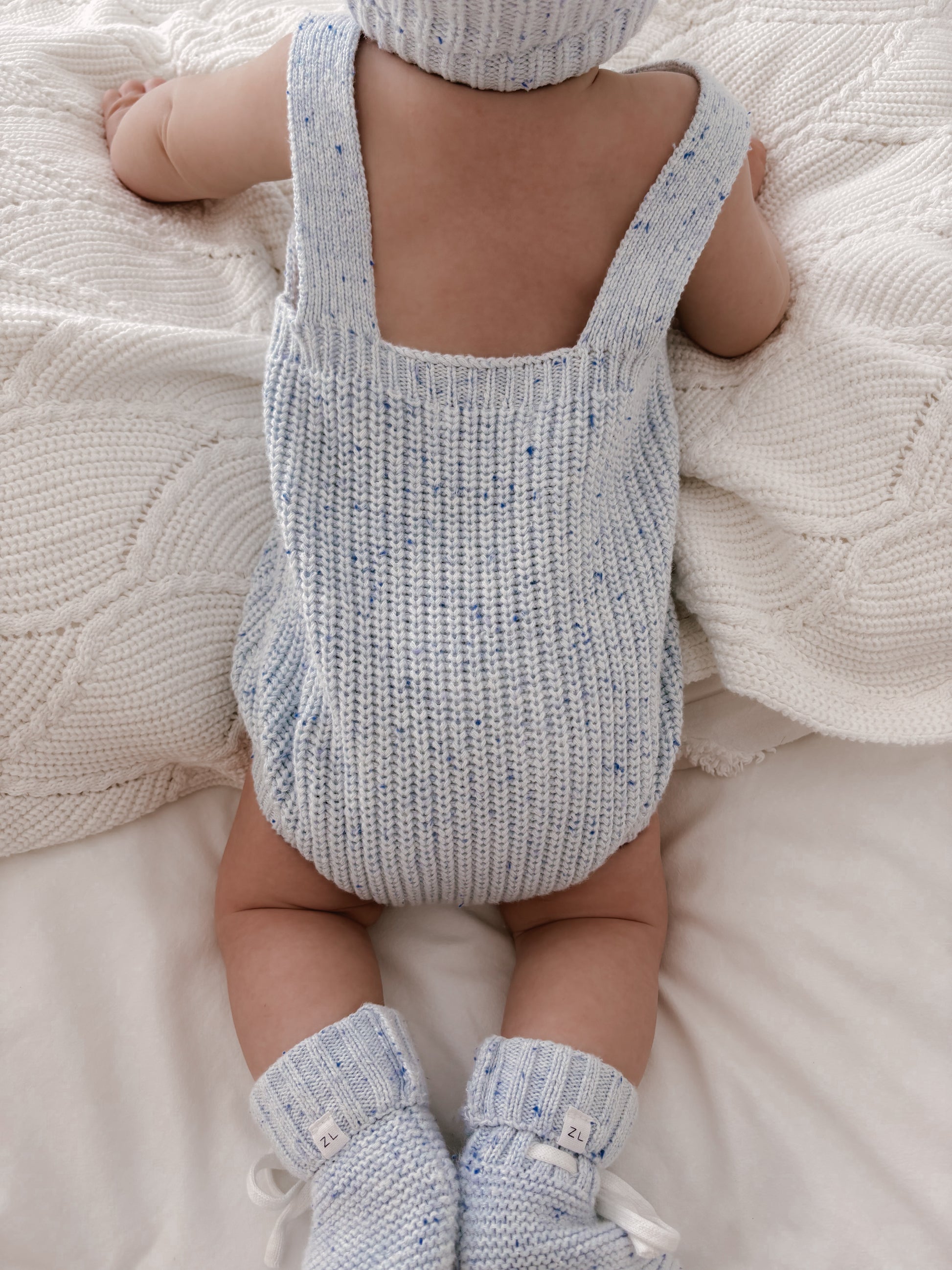 A gorgeous chunky knit romper in our custom dyed Aero Fleck colour. Functional buttons at crotch for easy nappy changes and buttons on the front of the shoulder to adjust straps and for easy on/off. Mix and match with items from our Aero Fleck Signatures Collection.