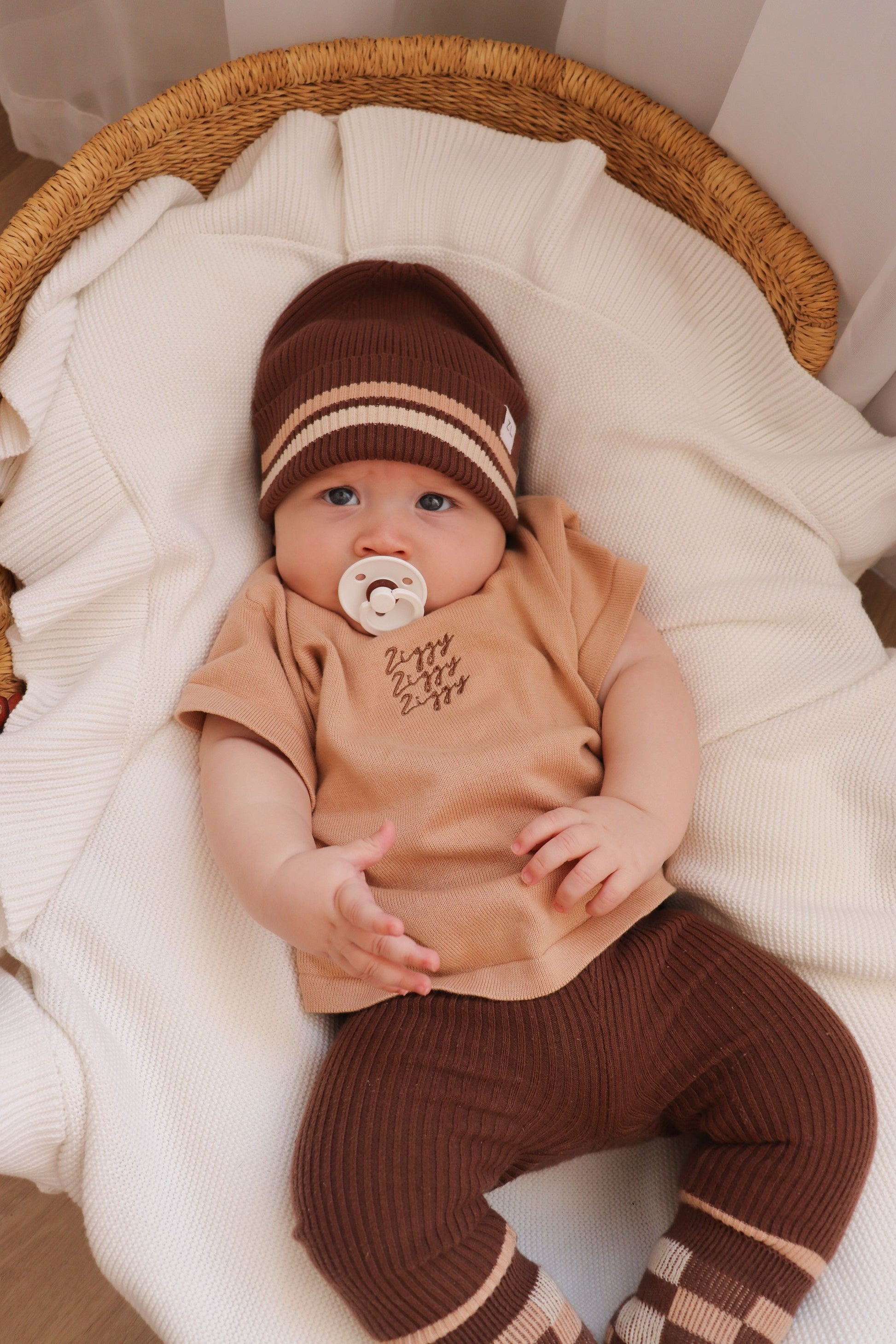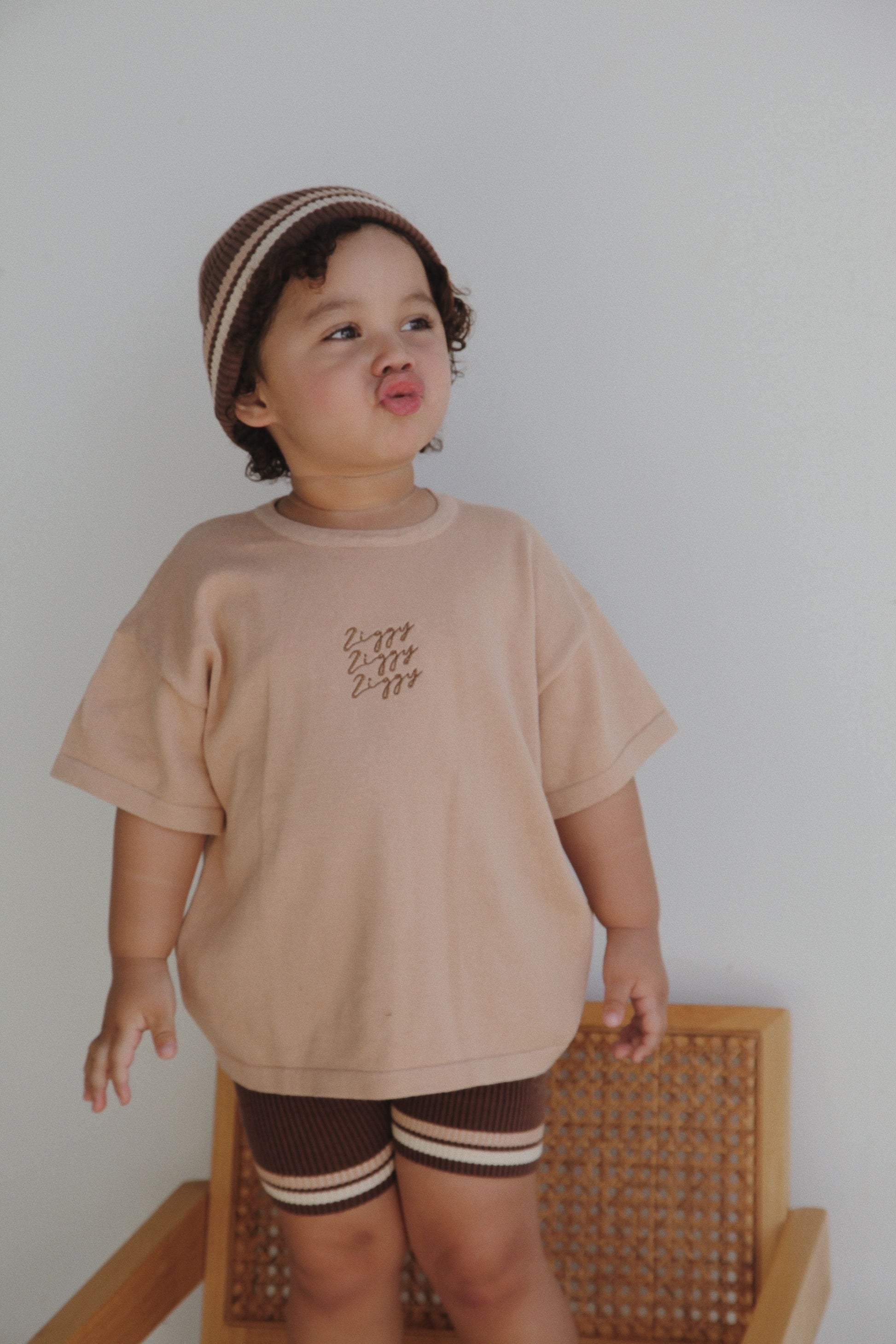 Knitted tee, made for everyday wear. Oversized fit, with our original Ziggy embroidered logo design. Pair with the Theo Bike Shorts or Checks Overalls.
