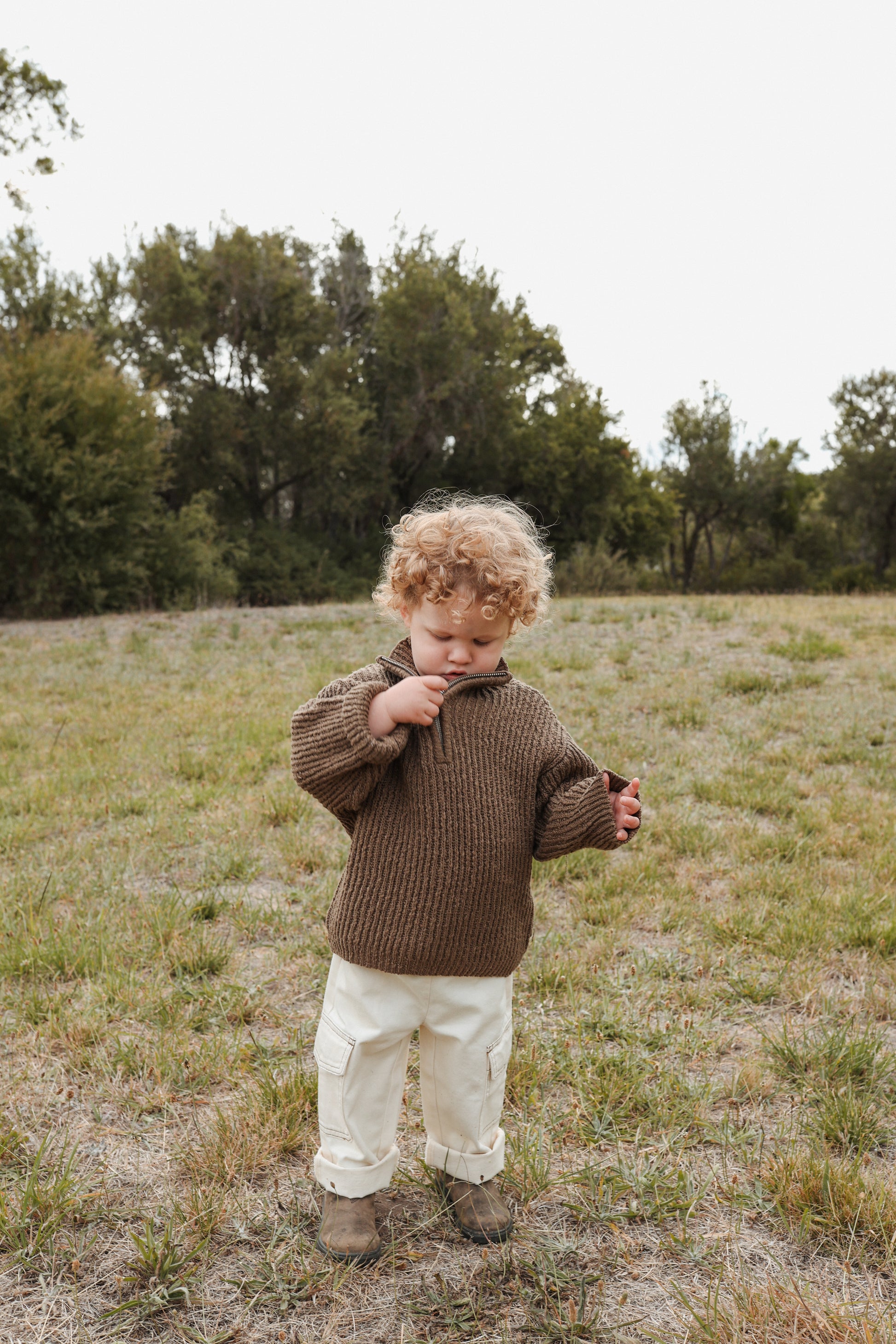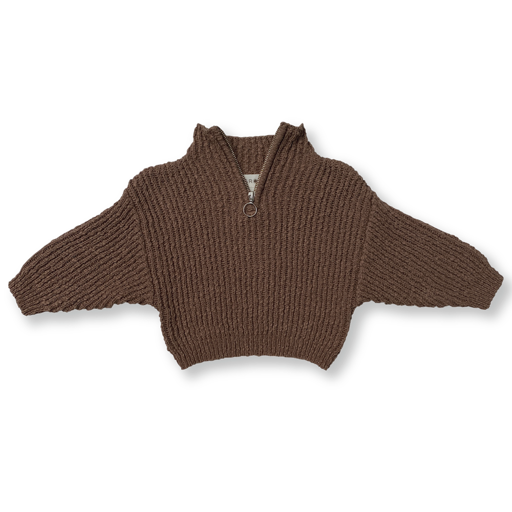 Slub Yarn Knit Zip Pull Over - Clay