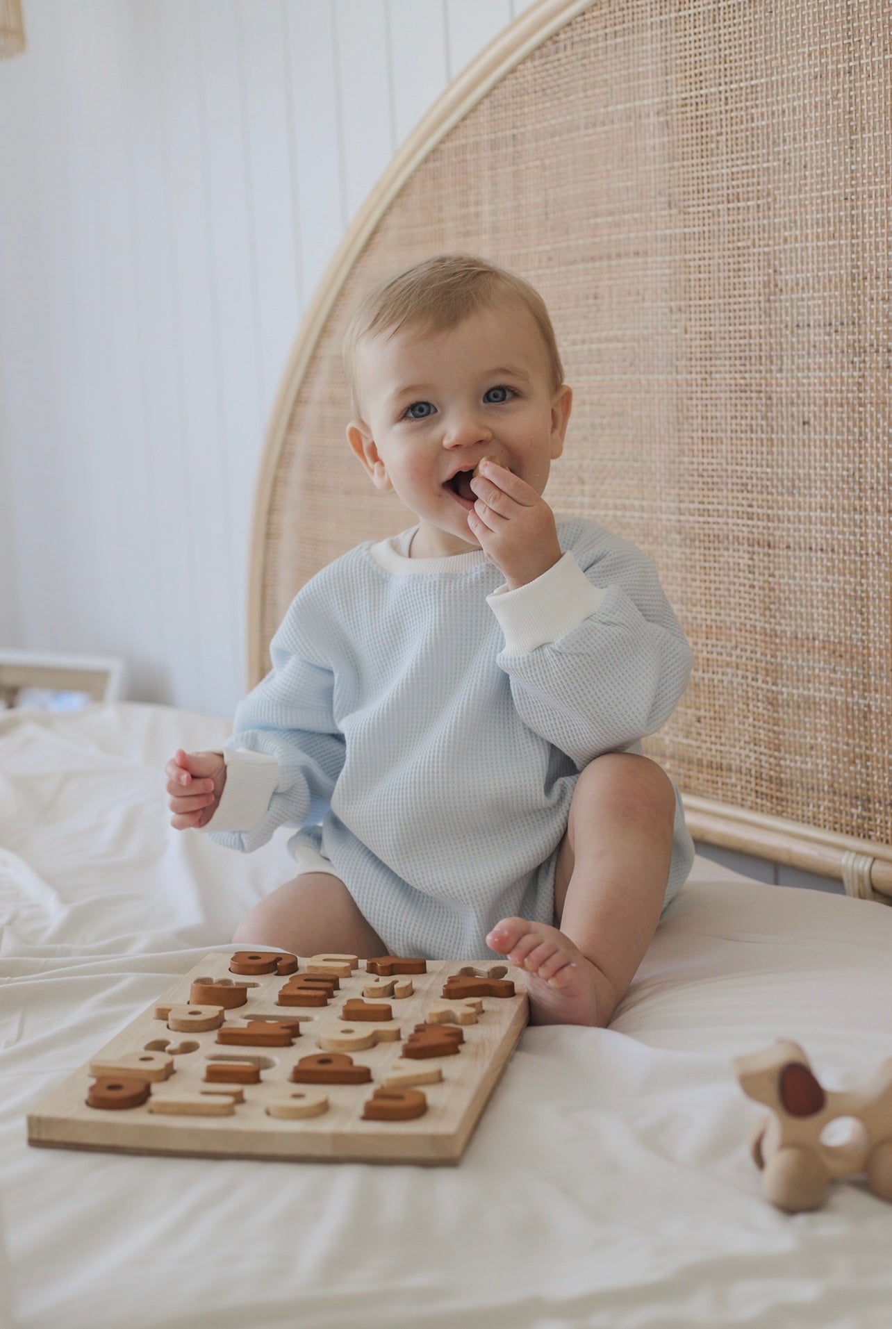Waffle Romper - Powder Blue | SIZE 2 LEFT