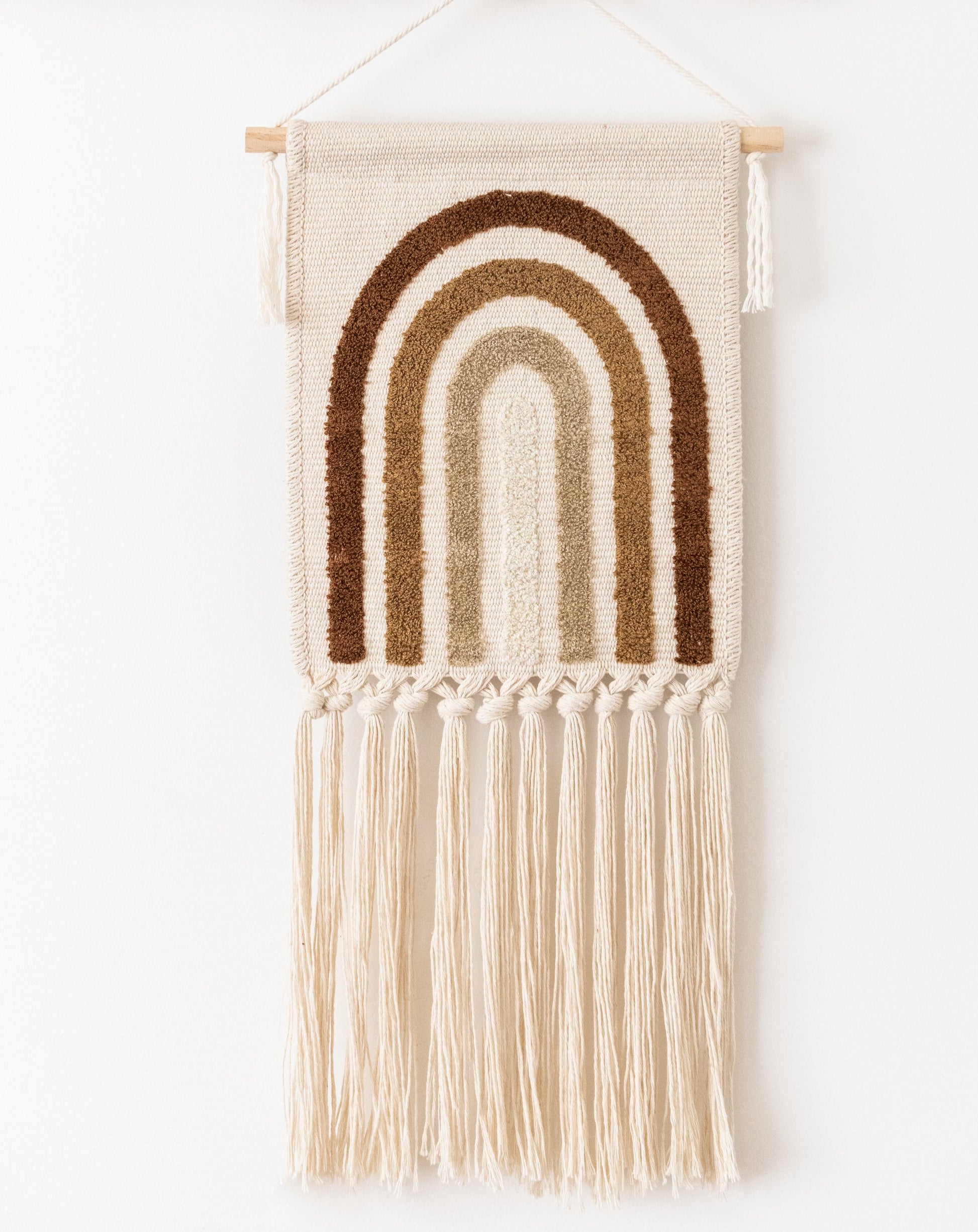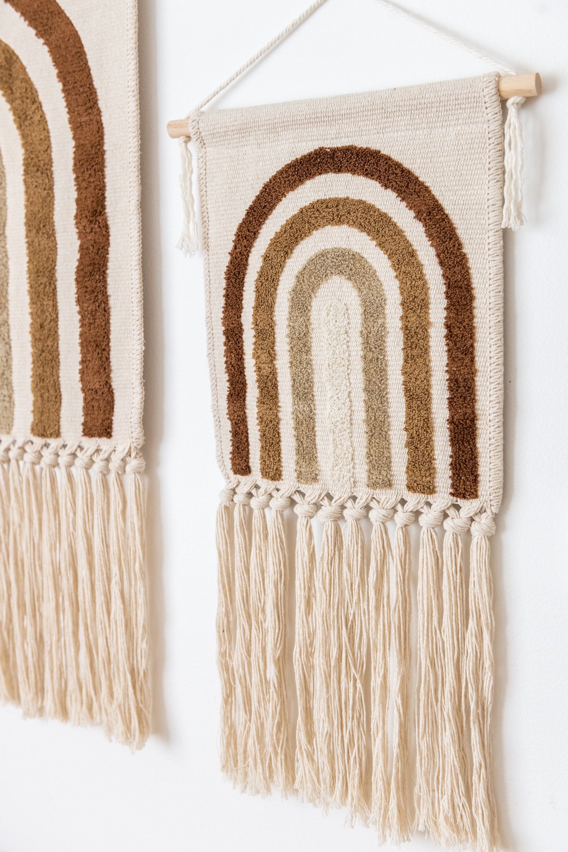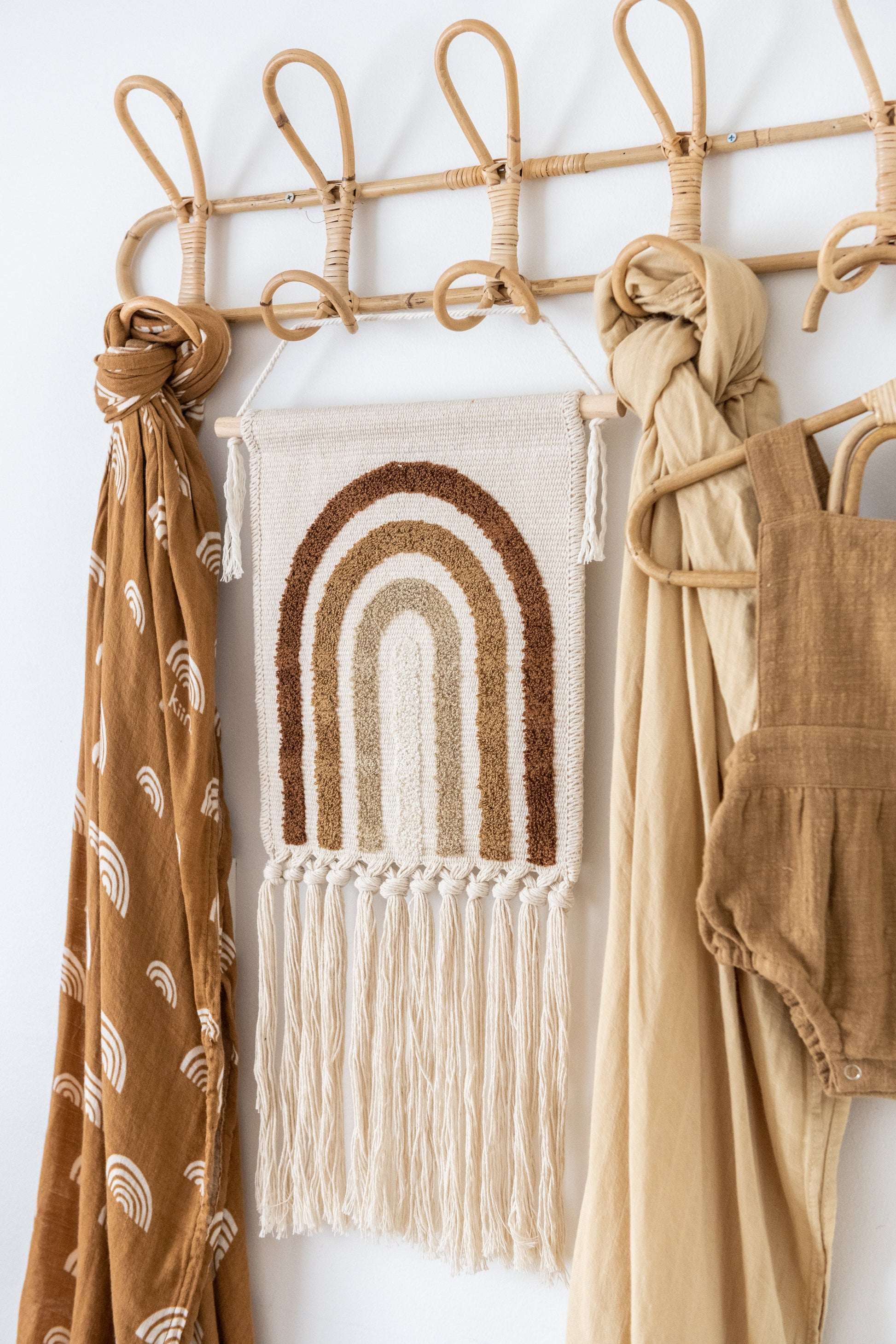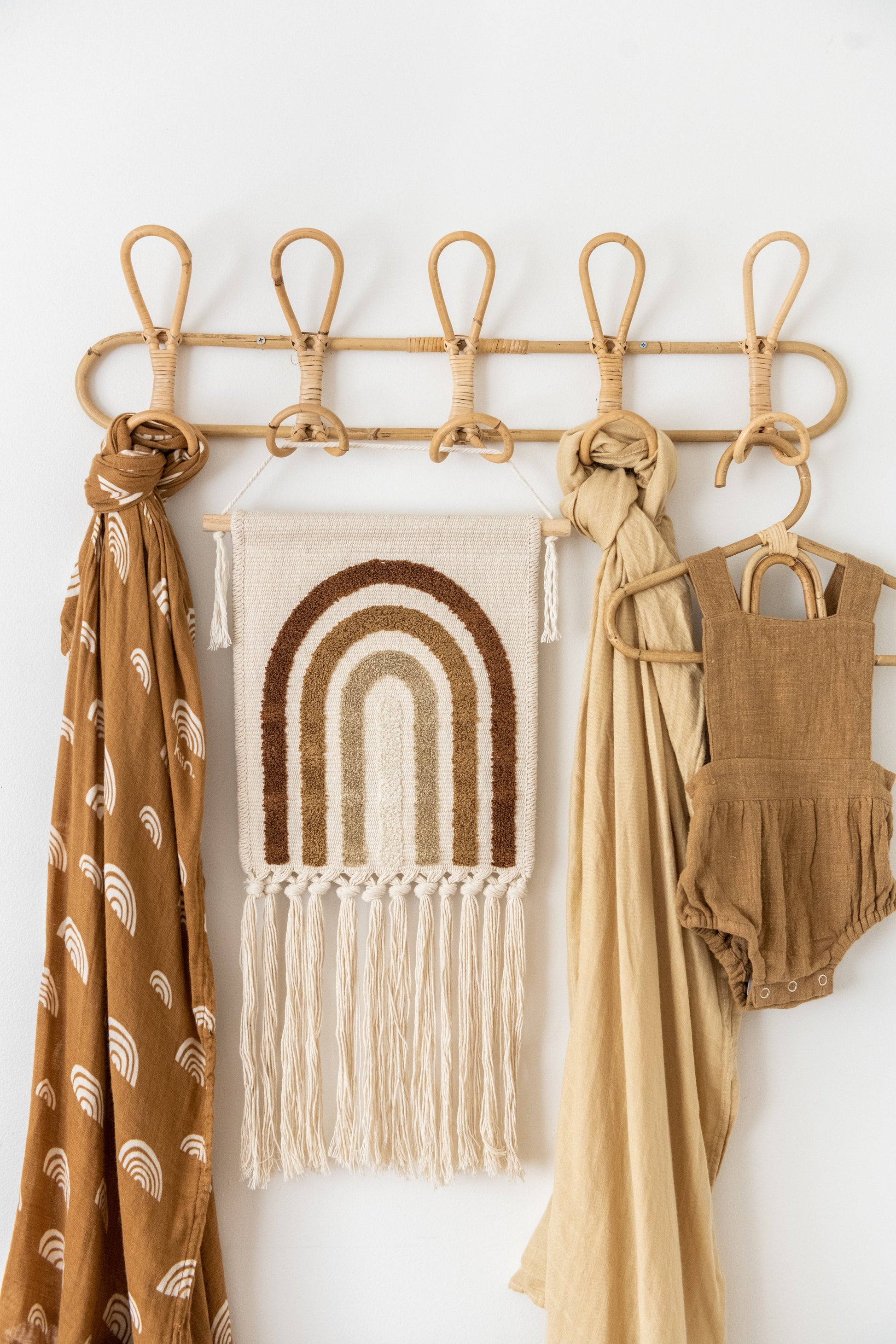 Introduce bohemian vibes to your interior walls with the Kiin Baby Rainbow Wall Tapestry! Our boho style Rainbow Wall Hanging elevates any space by adding texture, dimension and a natural look and feel. It is the perfect addition for any modern nursery or home, and makes a great gift for newborn babies or a baby shower! Also available in large size.